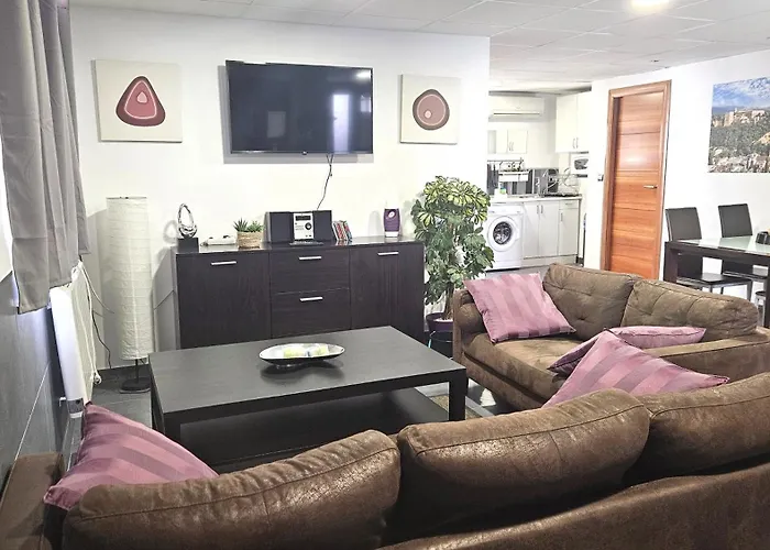 El Apartamento Aldamy Apartamento Granada se encuentra en el barrio Genil, a 3 km de la calle Navas, y cuenta con depósito de equipajes y excursiones a caballo en las instalaciones. Este apartamento de 60 m^2 ofrece instalaciones modernas, como Wi-Fi y servicios esenciales como un aparcamiento para los que viajan en coche.